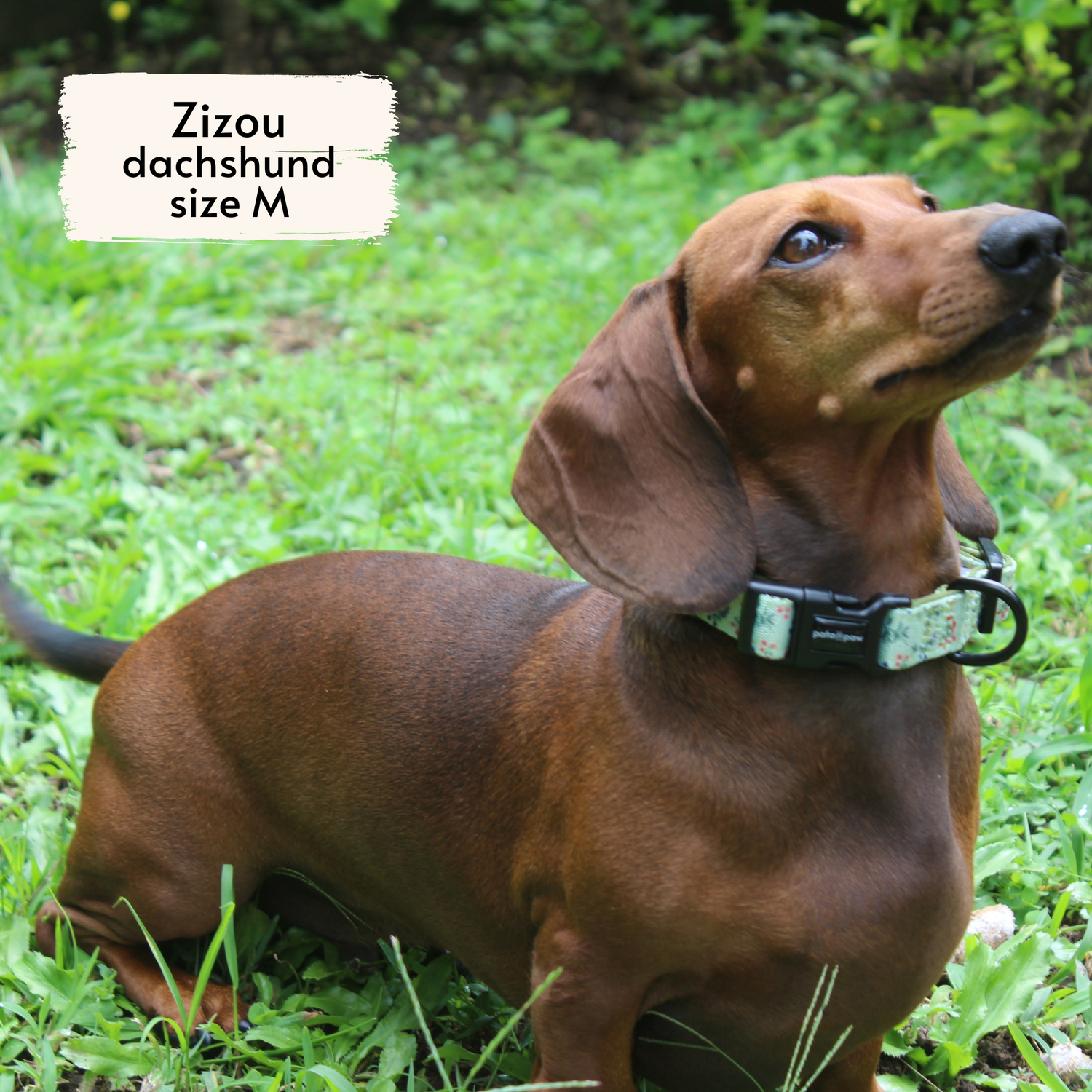 • Pata Paw alpine wildflowers collar as seen on a small-sized dog, Gino, a Jack Russell Terrier