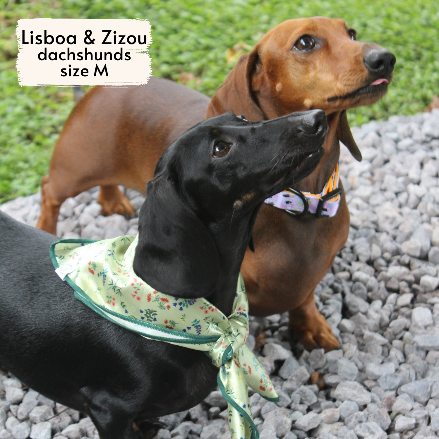 “The perfect bandana! Beautiful vivid colors that compliment my dog so well. The fabric is not too heavy, so he can easily run and play while wearing it. It also doesn’t get dirty very easily which is a huge plus for us!”