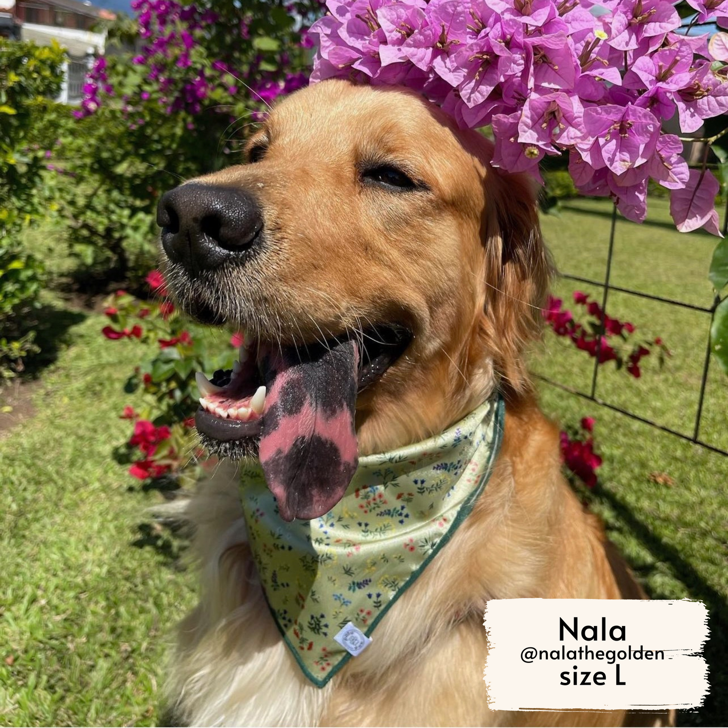 • Pata Paw Alpine Wildflower bandana as seen on a medium size dog, Nala, a rescue dog