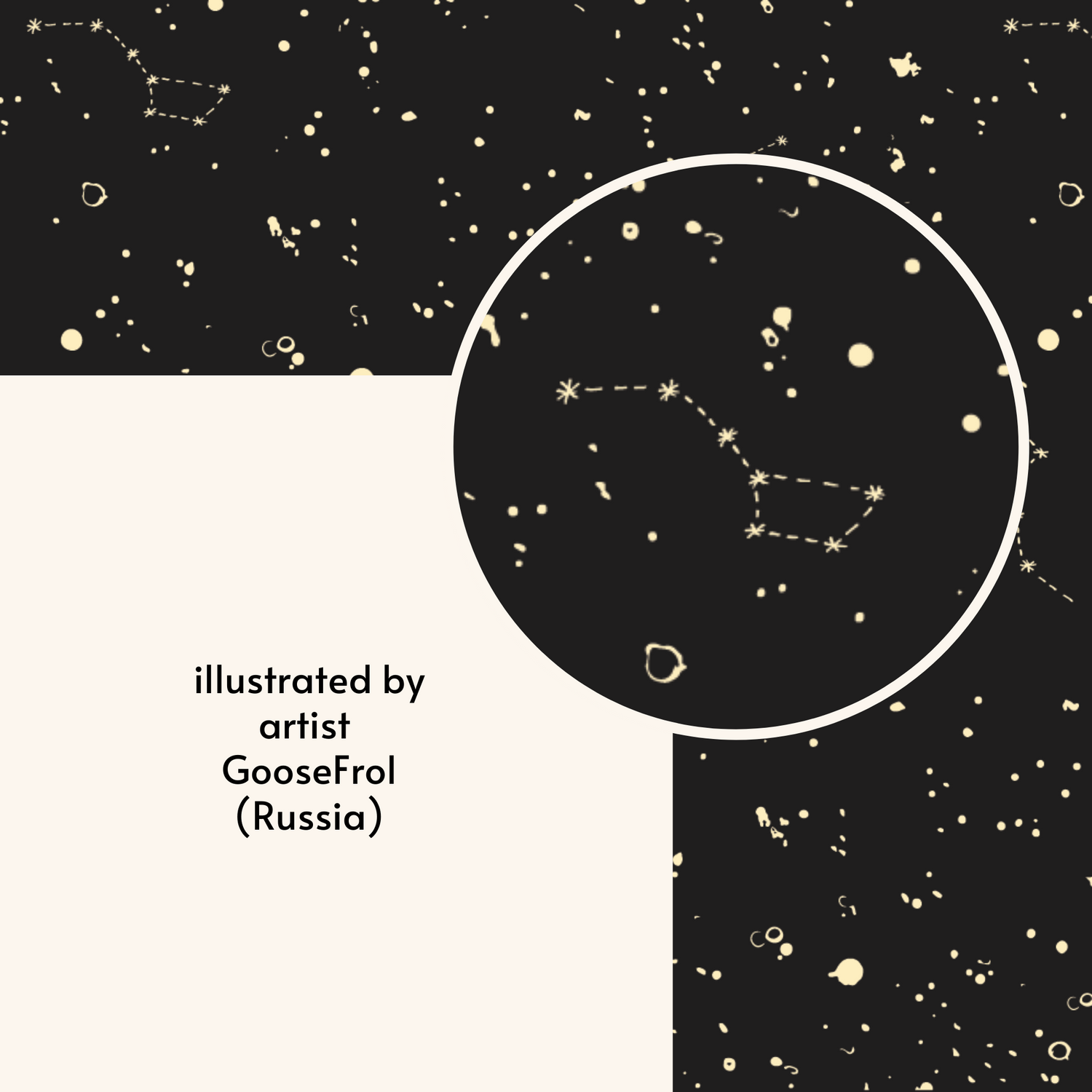 Because our dogs are out of this world! A fun and colorful outer space print for all pup-kind. On the other side, a starry night illustrated by artist GooseFrol (Russia).