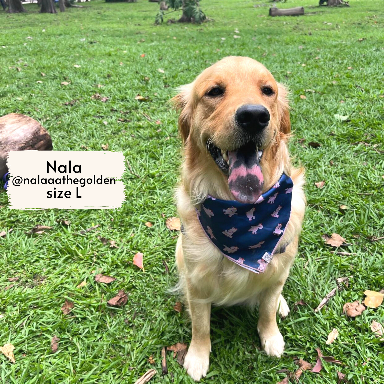 • Nala, rescue dog in Dubai, wearing Pata Paw's Alpine Wildflowers dog bandana