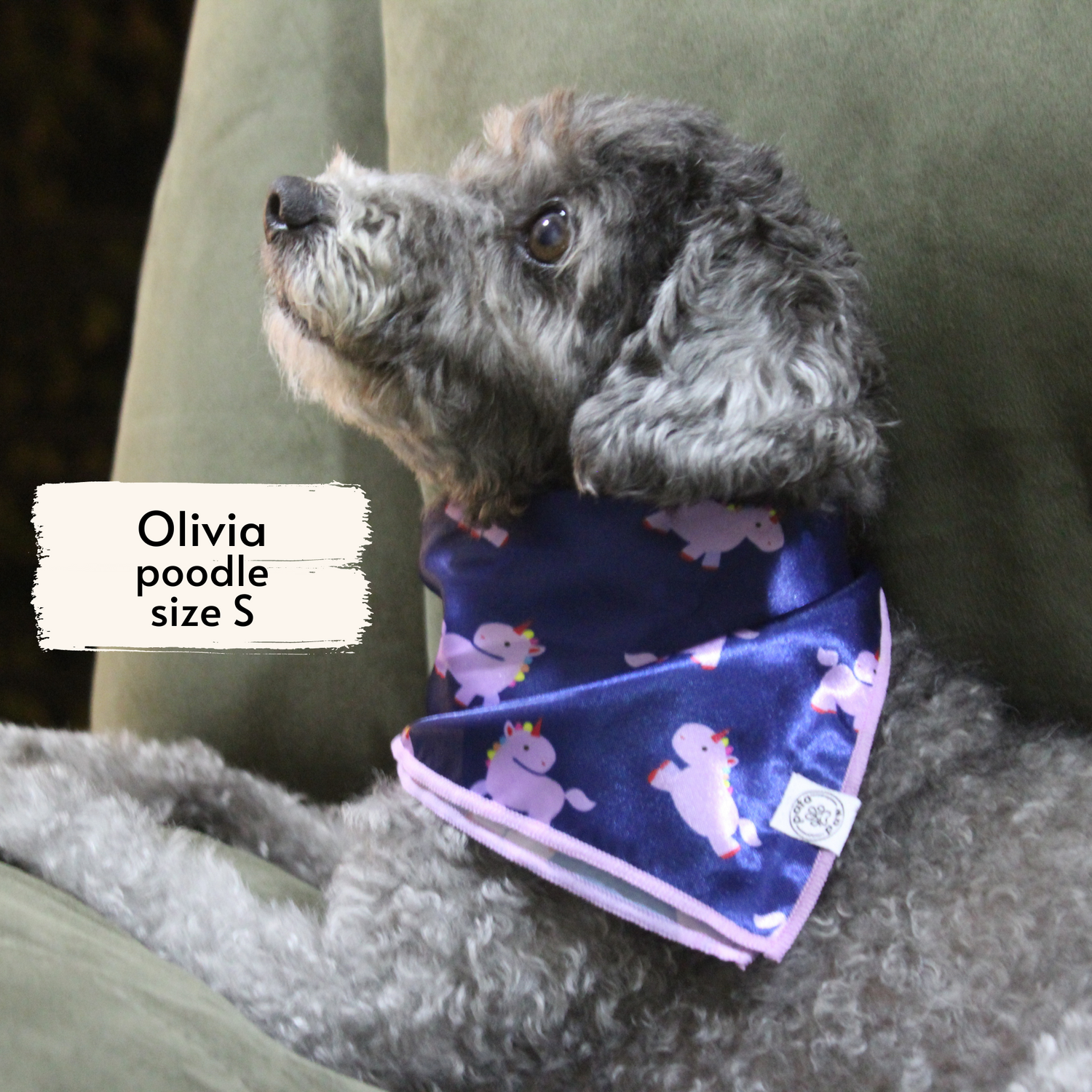• Pata Paw hero unicorn bandana as seen on a small dog, Koda, a shih tzu.