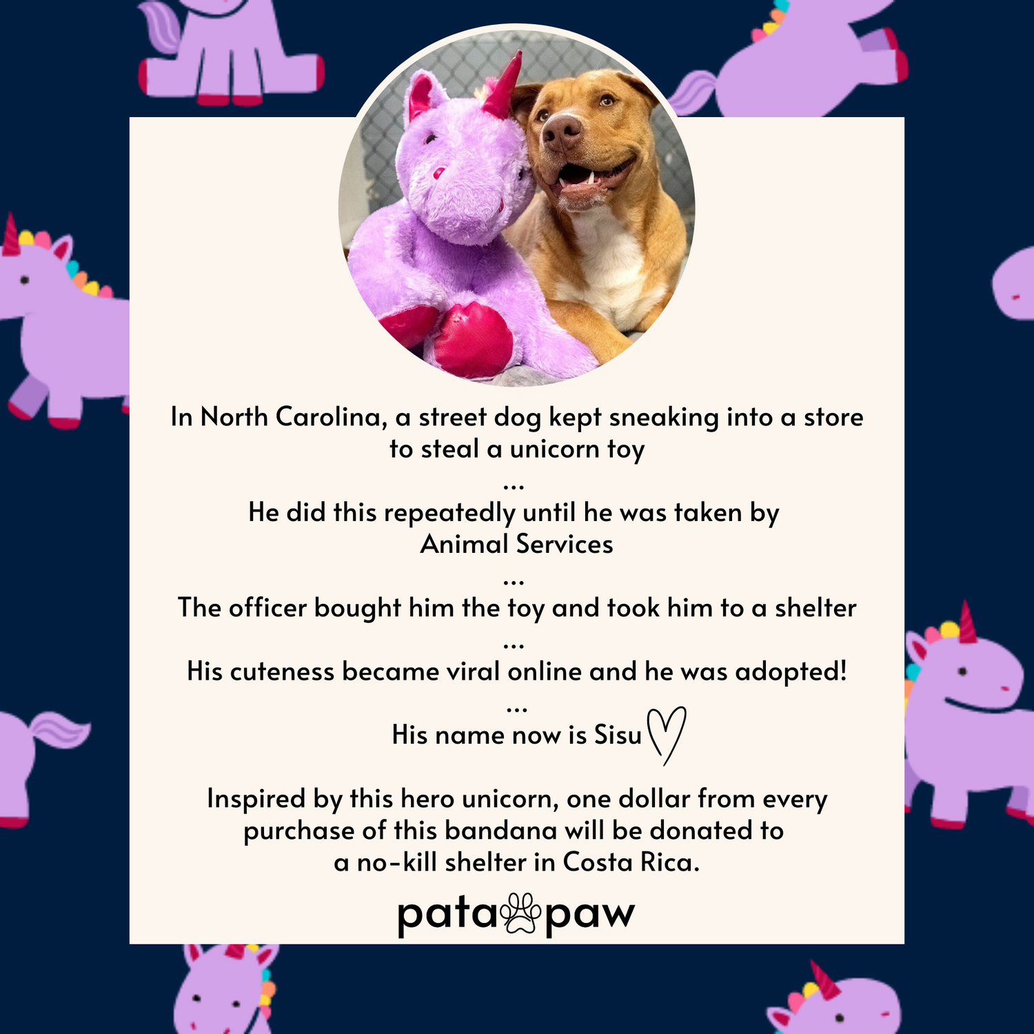 Featuring a hero unicorn! Sisu, a former stray dog, repeatedly tried to steal a unicorn toy <3 he became famous online and got adopted!